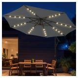 - PATIO UMBRELLA WITH SOLAR LIGHTS: 32 solar-powered Lights can work for 5-7 Hours when fully charged. The outdoor umbrella lights are powered by the solar-charging battery in the solar panel on the top of the patio umbrella, creates a warm and inviting ambiance for your outdoor space.