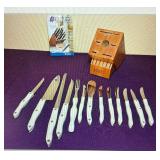Phillip Gekas furniture and whimsical are pieces. Featuring bookcases, meditation bench, occasional table. Chest of drawers, lingerie chest, end tables, colorful paint palette table, thonet style Bentwood chairs. 13-piece set of Cutco knives with wood block. Sterling silver child’s flatware set. Sterling sugar softer and spoons. Sterling silver ball point pen from Tiffany & Co. Sterling jewelry includes pendants, rings, and earrings.