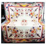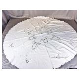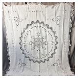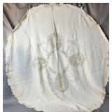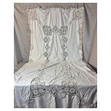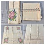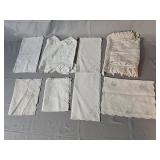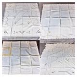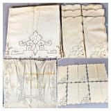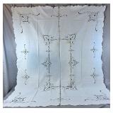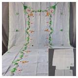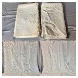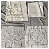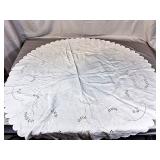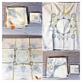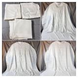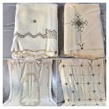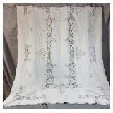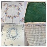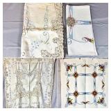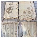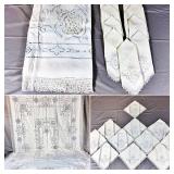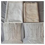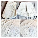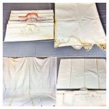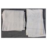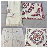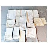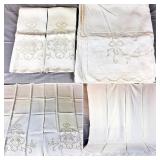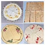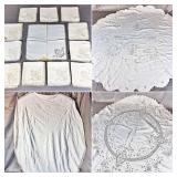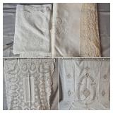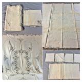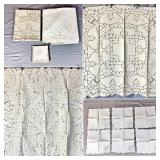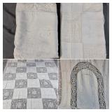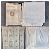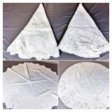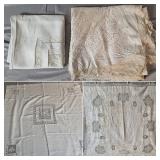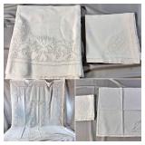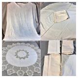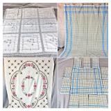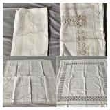 Tablecloths Galore - The crown jewels of this auction, with an extensive selection of vintage tablecloths ranging from intimate dinner sizes to grand banquet lengths. Choose from elegant white damask pieces with intricate fern and floral patterns, hand-embroidered treasures, and stunning examples with needle lace and hemstitched details.