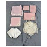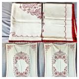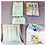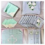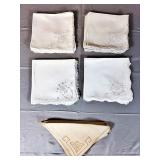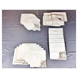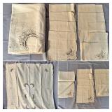 Napkin Collections - Dozens of sets of vintage linen napkins, many with decorative lace edges, embroidered details, and matching tablecloth sets. Perfect for completing your table settings or starting a new collection.