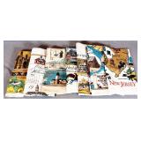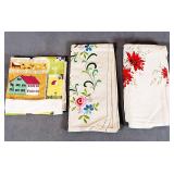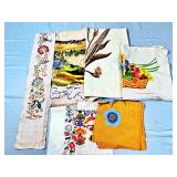 Vibrant Printed Tablecloths - A large and delightful collection of vintage printed tablecloths featuring colorful patterns, retro designs, and charming motifs. These eye-catching pieces bring personality and nostalgia to any table setting and are highly sought after by mid-century enthusiasts and collectors.
