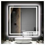 (150) 36X36 LED Bathroom Mirror with Lights, Anti-Fog, Dimmable, Backlit + Front Lit, Smart Bathroom Vanity Mirror, Memory Function, Shatterproof, Tempered Glass (Horizontal/Vertical)