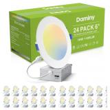 DAMINY 24 Pack 6 Inch LED Recessed Lighting with Junction Box,5CCT,Ultra-Thin Recessed Light,10W 1100lm, Dimmable Canless Wafer Ceiling Light, High Brightness - ETL