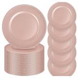 fani 50 Pcs Rose Gold Charger Plates Bulk, 13'' Round Beaded Dinner Charger Plates, Plastic Reusable Vintage Table Decoration for Wedding, Party, Reception, Event, Holiday Supplies