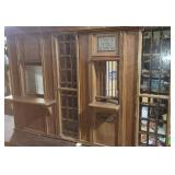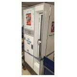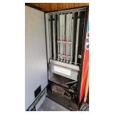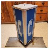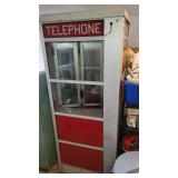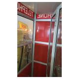 1950/60's PHONE BOOTH & Separate Topper: Aluminum Frame and Glass Inserts Red Panel Phone Booth, Lighted and has a 25c/10c/5c Pay Phone! Approx 90" tall, 3-panels with folding door, bring a truck & help, cannot be laid down. "Phone" 4-sided glass Telephone Booth Topper.