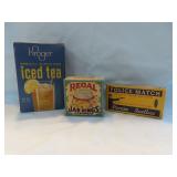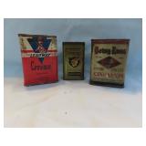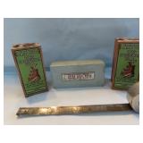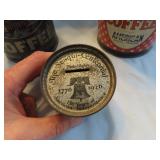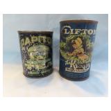 ADVERTISING TINS, BEER TRAYS & BOTTLES (2nd Auction Ring): Pair Geo. Alderton Tin Bulk Storage Bins, Bulk Cinnamon Counter Tin, Golden Rule Roasted Coffee 25lg Bin, Delico Sugar Wafers Counter Tin, Dr Johnson's Cracker Tin, Kacy Jones Potato Chips Tin, Johnston Charm Soda Bin, Geo Washington Cut Plug, Shelter Island Oysters, Applegath Oysters, Marcel 3lb Potato Chip Tin, 1926 Boscul Penny Bank, Oats Containers, COFFEE: Capitol, Acme, Golden Dream, Royal Blue, Boscul, CDM, High linden's, Campbell, Trexler Park, Pine Hills, Old Mansion, Ko-We-Ba, Hinz's, Millar's, White House, Troxa, Havacup, King; LARD: Lancaster Packing, Rosedale (50lb, Cols), McMillan, Braun, Decker, Banquet, Zehner's, Fischer's, Dunlevy, Falters; TOBACCO: Sweet Mist, Past Time, Big Ben, Raleigh, Dill's, Holiday, Velvet, Bond, Union Leader, Edgeworth, Half/Half, Tuxedo, KY Club; BEER TRAYS: Olde Towne (Newark), Forest Rose (Lancaster), Malvaz Extracts, Neuweiler's, F&S, Detroit, Edelweiss, Hanley's, Beverwyck, Bucyrus, Nectar & Schaefer; OTHER: Atlas Blasting Caps, (4) Pop Corn Tins, Orange Crush Bottler's Base, Lucky Tiger Dandruff, Black Beauty Friction Tape, Country Colonel Corn (C'ville Can), Kroger Avondale Can, Monarch Peanut Butter (50lb), Luncheon Peanut Butter, Old Sarge Gun Oil, Military Foot Powder, Black Star Roof Coating, Ultramarine Blue in Powder Tin, Dutch Boy Linseed Oil & Paint Bucket, Tums Pot-O-Gold, Gold Band Talcum, Spice Tins, Lander's Candy, Fleischmann's Yeast Tin, Baker's Cocoa, Knox Gelatine, Xmas Land Miniature Crate of Apples & Miniature California Oranges Crate, BOTTLES: Coca Cola Seltzer Bottle (Athens), Pepsi Double Dot w/Label (Athens), Green Embossed Pepsi (Athens), Heep Good, Green Mill, XXX, 7-Up, Harmony Club, Covert, Up, Top Rock, Whistle, Pleasant City, White Club, Rock Creek, Tom Boy, Variety Club, Arctic, Kay's, Raleigh's, Golden Rule Red Dye, Compound White Pine Syrup (Cline-Albany), Medicine, etc!