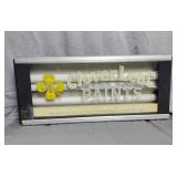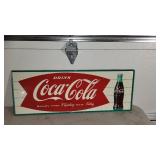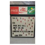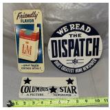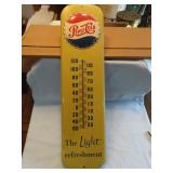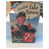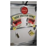 SIGNS, THERMOMETER's & CLOCKS: SIGNS: Early Gold Shield Coffee Cloth Banner (sm repair, 71.5x28), Geo Sayer & Co "Cognac" SST in (Framed, 25x17), Dr Siegert's Angostura Bitters SST, Real Lifesavers Pep-O-Mint SSP (60x25), Bond Bread SSP (38x14), Bond Bread Door Push (20"), Finck's Overalls SSP (39.5x14), King Edwards Cigars SSP (76x40), Eagle Stamps SSM (92x45), Nantucket Fish & Lobster ptd Wood Sign (45x5), Rare Golden Acres (Taylor Evans Seed) SSM (24x24), Pepsi Double Dot Bottle Cap " No Finer Cola At Any Price" SSM (56x33), Let's Stop for a Pepsi SSM, Pepsi Bottle Cap (18" dia), Pepsi The Light refreshment-Bottle Cap Menu Board (30x20), Pepsi Menu Board (27x19), Royal Crown Bottle Sign SSM Emb (36x16), R/C "Place Empties Here" SSM (12x7.5), R/C SSM (24"sq), Drink Coca Cola Fishtail SSM (31.5x12), 1949 Drink Coca Cola SSM (53x18), Fountain Service Coca Cola SSP (30x12), Enjoy Coca Cola (36"sq), Drink Coca Cola SSM (28"),Enjoy Fresca SSM (31.5x12), 7up w/Menu Items SSM (108x46), 7up Fresh-Up Menu Board (30x20), 7up SSM (8x6), Old Dutch Root Beer SSM Emb (35x17), Triple A Root Beer SSM (27x20), Stewart's Root Beer SSM, Orange Crush w/Crushy SSP Door Push (16x12.5), Orange Crush Menu Board, EZE Beverages Menu Board (19x13), Beck's Beer Menu Board, Dr Pepper SSM (23x13), Mountain Dew Porc Door Push (31x2), Diet Rite Cola SSM (54x18), Sun Crest SSP (16x10), Pal Soda SSM (14x4), Love Nest 5c Candy Bar SSM (26x10), Love Nest 5c (13x2), Star Soap SST (12x8.5), Stutts Eas-It Tin Tacker (20x9), Howe Scales SSP (45x9), Leigh Cement SSP (70x16), Beaver Best Wall SSP (60x36), Philip Morris Tin Tacker (26x14), Yankee Girl Tin Tacker (20x6), Prince Albert Sold SSM (23x14), Chesterfield Double SSM Sign, L&M Tin Tacker,Braun's Bread SSM (33x16), Lion's SSP (30"),Arby's DSM (47x36), Kroger's DSM (47x36), Curtis & Ilco DSM Key Signs (31x15), Feed Standard SSM (24x12), Coast to Coast Tourists Aid USA Tin Tacker DST, Square Elec Shop SSP, Jumbo Parade Back Glass, (2) Dispatch Signs, Columbus Star Sign, Beer Signs/Mirrors, IGA Plastic (86x56)....LIGHTED/NEON SIGNS: Foremost Ice Cream Neon, Lite Beer Neon, Schoenling Beer, S&H Green Stamps, Carstairs Whiskey, Clover Leaf Paints, Bavarian Beer, Maybelline, Roper Post Hole Diggers....CARDBOARD: 1954 Coca Cola "Take Enough Home" Cdbd Sign, Coca Cola Beach Girl framed cdbd (26x11), Quaker Rolled White Oats (21x11), Blue Ribbon Cigar Counter Sign, 7up Tastes Like Spring Counter Sign (18x12), 7up Fresh Up (34x21), 1964 Frosty Dr Pepper Paper Ad, Clines Ice Cream Counter Sign (Athens), Horlacher's Bock Beer, Wrigley's Spearmint Gum Box (35x10), Wrigley's Juicy Fruit, Plastic Wood Sign (24x14), Old English Wax (24x14), Cardboard Boxes & Paper Ephemera, Advertising cdbd Fans....THERMOMETER's: Outstanding Bayer Remedies Porcelain Thermometer (43x8), Mail Pouch Porc (72x18), Mail Pouch Porc (39"), Peters Shoes Porc (19x6), NOS Royal Crown The Fresher Refresher (25.5 x10-w/orig box), Drink Royal Crown (25x10), Royal Crown Cola Fresher Refresher (13.5x6), Embossed Pepsi Bottle Cap top (27x7), Pepsi Any Weather's Pepsi Weather (27x8), Have A Pepsi (26x6), 7up "Fresh Up" (15"), 7-Up Black (20x5), Drink Coca Cola Dial (12"), Coca Cola Bottle (29"), Ohio Jumbo Mt Dew Dial, Dad's Root Beer (26x10), Dr Pepper Frosty-Cold (16x6), Nesbitt's (26x6), Nesbitt's All Goodness (27x7), Bubble Up, L&M, Marvels Cigarettes, Winston Cigarettes (14x6), Buster Crabbe Pools (24x8)....CLOCKS: 1930's United Will Rogers Figural Cast Mantle Clock w/Side Lights, 1948 Coca Cola Button Clock, 1960's Things Go Better with Coke Clock, GE Telechron Monitor Top Refrigerator Promo Clock, Crown Royal Neon, 1980's Dr Pepper Vim, Vigor, Vitality Clock, Pam Whistle Clock (From Old Logan Drive-In, As-Is), Coors Extra Gold & Dualite Wall Clock