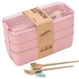 Set includes wheat fiber microwave lunch box with fork and spoon in pink . Functional and sharp design, rooted in minimalist Japanese lunch-box traditions.The product is suitable for above 3 years old.