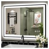 (147) 40x30 Black Framed LED Bathroom Mirror with Lights, Backlit + Front Lit, Anti-Fog Lighted Vanity Mirror for Bathroom Wall with 3 Colors, Dimmable, Memory, Tempered Glass, Horizontal/Vertical