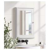 Fluted Bathroom Cabinet Wall Mount, Medicine Cabinet Storage Organizer with Single Door and Adjustable Shelves, Oak - $150.99