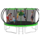 Trampoline, Trampoline with Enclosure Net 14FT 1400LBS Trampoline for 3-4 Kids and 2-3 Adults, Trampoline with Basketball Hoop and Ladder, Ball, Heavy Duty Outdoor Trampoline, Green