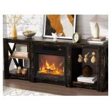 Fireplace TV Stand Cabinet for up to 70" TVs, Farmhouse Entertainment Center - Dark grey oak color (HEATER SOLD SEPARATELY)