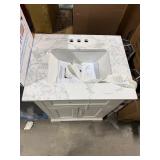 (44) YASINU Bath Mist 48 in. W Single Sink Freestanding Bath Vanity in Green with White Engineered Top