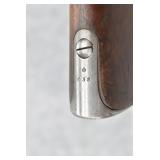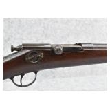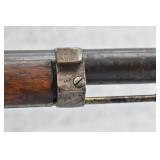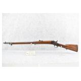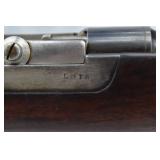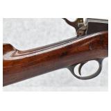 79. Remington – Mod. 1897 Military Rolling Block Rifle – 7mm Cal. Single Shot Breech Load Rifle – w/30” Barrel w/Blade Front & Adj. Rear Ladder Sights – Gray Finish – w/Straight Grip Wood Butt Stock w/Metal Butt Plate w/Full Length Forearm Secured by 2 Barrel Bands – w/Cleaning Rod – Mfg. Between 1897-1902