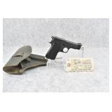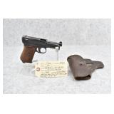 17R. Mauser – Mod. 1914 – 7.65 (32 Auto) Cal. Semi-Auto Pistol – w/3 ½” Barrel w/Front & Rear Sights – Blued Finish – w/Checkered Factory Wood Grips – w/Factory Mauser Marked Magazine – w/Leather Holster Marked “L.A. 48” on Back