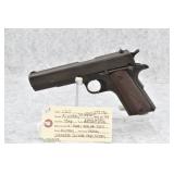 20R. Colt – Mod. 1911 US Army – “U.S. Property” Marked – 45 ACP Cal. Semi-Auto Pistol – w/5” Barrel w/Front & Rear Iron Sights – Military Finish – w/Factory Checkered Colt Wood Grips – w/Factory Magazine – Mfg. 1919
