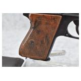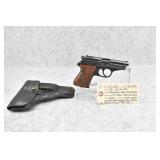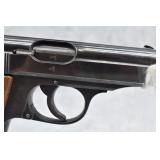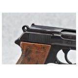 21R. Walther – Mod. PPK – 7.65mm (32 ACP) Cal. Semi-Auto Pistol – w/3 ¼” Barrel w/Front & Rear Iron Sights – Blued Finish – w/Factory Walther Checkered Brown Bakelite Grips – w/Factory Mag – w/Period Leather Holster – w/Wartime Commercial German Proof Mark on Slide & Barrel – Mfg. 1940