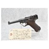22R. DWM – Mod. P.08 German Luger – 9mm Cal. Semi-Auto Pistol – w/4” Barrel w/Front Blade & Rear Sights – Blued Finish – w/Factory Checkered Wood Grips – Appears All Numbers Matching Including Mag – Dated 1921 – Note: Only a #3 Under Barrel