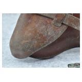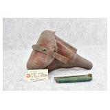 23. A. Fischer – German Leather P.08 Luger Holster & Wooden Base Luger Mag – w/Luger Tool – Dated 1929