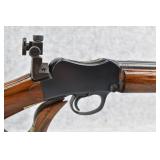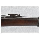 89R. Winchester – Mod. 1885 Low Wall Winder Musket – 22 Short Cal. Single Shot Breech Load Rifle – w/28” Barrel w/Blade Front & Correct Adj. Rear Receiver Peep Sights – Blued Finish – w/Straight Grip Wood Butt Stock w/Metal Butt Plate & Full Length Musket Wood Forearm – Marked “US” & Ordnance Bomb Stamped Tang – Mfg. 1918