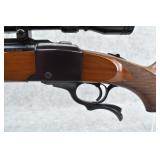 40R. Ruger – Mod. No. 1-B Medium Sporter – 30-06 Cal. Single Shot Falling Block Rifle – w/22” Barrel – Blued Finish – w/Checkered Capped Pistol Grip Wood Stocks w/Factory Recoil Pad – w/Tasco 3-9x32 Scope w/Factory Ruger Rings