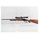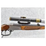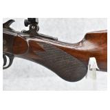 44R. J.P. Sauer & Sohn – Single Shot “Rook” Rifle – Rechambered to 32 Win. Spl. Cal. – w/26” Barrel w/Front & Rear Sights – w/Checkered Round Knob Pistol Grip Wood Stocks w/Factory Metal Butt Plate – Under Lever Break-Open – w/Double Set Triggers – w/Post Reticle Period Scope – w/DRGM Quick Detach Scope Mounts
