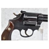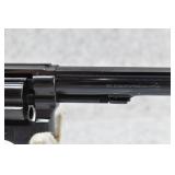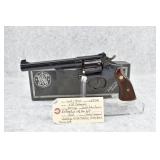 45R. Smith & Wesson – Mod. K-38 Masterpiece – 38 S&W Spl. Cal. Double Action Revolver – w/6” Barrel w/Ramp Front & Adj. Rear Sights – Blued Finish – w/Factory Checkered Wood Grips w/S&W Medallion – Underside of Barrel & Cylinder Has Matching Numbers, the Grips Are Serial #272358, 38 Numbers Off of the Serial Number – w/Factory Box w/Cleaning Swab