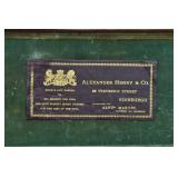 50. Alexander Henry & Co. – .500 (3” Black Powder Express) Hammer Double Rifle – w/27 ¾” Damascus Twist Barrels w/Front & Dual Flip Rear Barrel Sights – w/Fine Checkered Capped Pistol Grip Wood Butt Stock w/Cheek Piece & Hard Rubber Butt Plate w/Leather Cover & Matching Wood Checkered Levered Fastened Forearm – w/Rotary Under Lever Break-Open Lever – w/Back Action Locks – Gun Comes Fitted in a Leather Take Down Case w/Label, Key, Tool, Oiler, Grease, 2 Packs of 10ct. Eley Bro. Primed 500 3” Brass, 9ct Reloaded Rounds, Kynoch Primer Tin Full, Berdan No. 1 Primer Tin Full of Primers & Lock Tool – Nice Period Set Up!