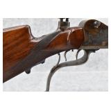 52R. H. Westphag in Paine – Mod. System Luck – 9.5x47 Cal. Single Shot Target Rifle – w/29” Octagon Barrel w/Protected Blade Front Sight – Blued Finish w/Case Hardened Frame – w/Large Oversized Cheek Piece Checkered Grip Wood Butt Stock w/Oversized Case Hardened Butt Plate & Matching Wood Uncheckered Forearm – w/Large Disc Fine Adj. Tang Sights – w/Double Set Triggers – w/Large Oversized Under Lever Break-Open Lever