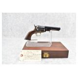 54. Replica Arms – Colt Mod. 1849 Pocket – 31 Cal. Black Powder Percussion Revolver – w/4” Octagon Barrel w/Bead Front & Hammer Notch Rear Sights – Blued Finish w/Case Hardened Frame – w/Factory Wood Grips – w/Wooden Case w/Powder Flask, Lead Balls & Caps
