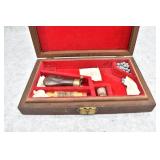 60. Rare Brass Framed Flintlock – Powder Tester – w/Wooden Pistol Grip – w/Brass & Iron Parts – w/Cleaning Markings on Brass Wheel – Circa Late 1700’s – Fully Functional
