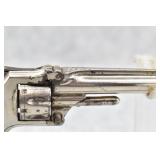 356. Smith & Wesson – Mod. No. 1 ½ Early Production – 32 S&W Cal. Single Action Top Break Revolver – w/3 ½” Barrel w/Pinned Round Blade Front & Notch Rear Sights – Nickel Finish – w/Factory Checkered Hard Rubber Grips – 97,574 Mfg. Between 1878-1892