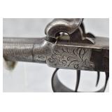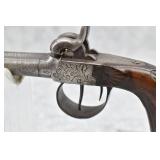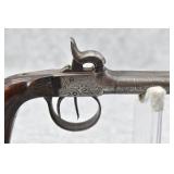 59. Belgian – 41 Cal. Double Barrel Percussion Pistol – w/3” Fine Twist Barrels – Gray Finish – w/Lightly Engraved Receiver – w/Caped Wood Pistol Grip – w/Double Hammers & Triggers – Fully Functional