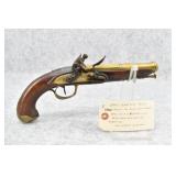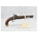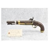 62. U.S. H. Aston – Mod. 1842 Cavalry – 54 Cal. Percussion Pistol – w/8 ½” Round Barrel – w/Wooden Grip w/Brass End Grip Cap & Trigger Guard – w/Brass Barrel Band – “Middletown C.T.” “1850” Marked on Lock