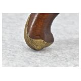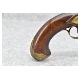 327. Cowles & Son – 30 Cal. RF Single Shot Pistol – w/3” Octagon to Round Barrel w/Blade Front & Notch Rear Sights – Gray Finish w/Brass Frame – w/Smooth Wood Birds Head Grips