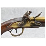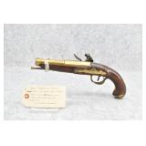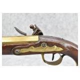 61. Early Flintlock Pistol – w/Brass Octagon to Round Cannon Barrel – w/Brass Bird Face Pistol Grip Cap – w/Brass Lock & Trigger Guard – w/Ram Rod – Fully Functional