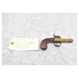 306. Brown Mfg. Co. – Mod. Southerner Deringer – 41 RF Cal. Single Shot Pistol – w/2 ½” Octagon Barrel w/Blade Front & Notch Rear Sights – Gray Finish w/Brass Frame – w/Factory Wood Grips – Mfg. Between 1866-1873 w/A Total of Approx. 6,500 Mfg. w/Brass Frames