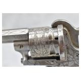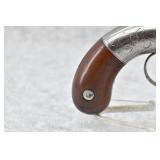 347. Brooklyn Arms Co. – Mod. Slocum Pocket Revolver – 32 Cal. RF Single Action Revolver – w/3” Barrel w/Bead Sight – Silver Plated Finish w/Brass Engraved Frame – w/Smooth Wood Grips – Patent Date 1863