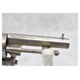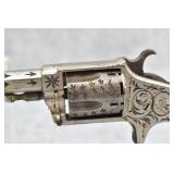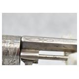 334. Red Jacket – Mod. No. 3 – 32 RF Cal. Single Action Spur Trigger Revolver – w/2 ¾” Octagon Barrel w/Round Blade Front & Grooved Rear Sights – Nickel Plate Finish – w/Bone Grips – w/Engraved Frame & Barrel – Fully Functional
