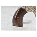 329. Forehand & Wadsworth – Mod. Swamp Angel – 38 Cal. RF Single Action Revolver – w/2 ¼” Octagon Barrel w/Blade Front & Notch Rear Sights – Nickel Finish – w/Factory Birds Head Wood Grips – Gun is Scroll Engraved w/Stitch Pattern Borders
