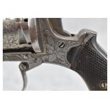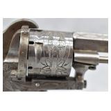 66. The Guardian American Pistol – Mod. CT 1875 – 7mm Pin Fire 6-Shot Revolver – w/Floral Scroll Engraved Frame & Cylinder – w/Checkered Bakelite Grips – w/Folding Trigger