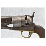 304. Colt – Mod. 1851 Navy – 36 Cal. Percussion Single Action Revolver – w/7 ½” Octagon Barrel w/Bead Front & Hammer Notch Rear Sights – Gray Finish – w/Factory Wood Grips – w/Strong New York Barrel Address – Gun is All Matching Numbers Including the Cylinder – Mfg. 1863