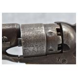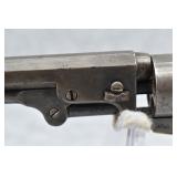 309. Colt – Mod. 1849 Pocket – 31 Cal. Percussion Single Action Revolver – w/4” Octagon Barrel w/Bead Front & Hammer Notch Rear Sights – Gray Finish – w/Factory Wood Grips – w/Scarce! Two Line London Barrel Address – Gun is All Matching Numbers Including the Cylinder Which is British Proofed – Note: Action Need Adjustment