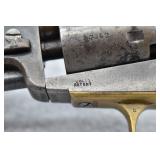 310. Colt – Mod. 1862 Police – 36 Cal. Percussion Single Action Revolver – w/4 ½” Round Barrel w/Bead Front & Hammer Notch Rear Sights – Gray Finish – w/Factory Wood Grips – w/Strong New York Barrel Address – Gun Appears All Matching Numbers – Mfg. 1863
