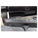376. Remington – New Model Army Cartridge Conversion – 45 Cal. CF Single Action Revolver – w/8” Octagon Barrel w/Blade Front & Groove Rear Sights – Gray Finish – w/Factory Wood Grips w/Cartouche on Left Grip – Gun Appears to be All Matching Numbers Including the Cylinder & the Conversion Loading Gate & Recoil Shield Are Numbered “87” – According to Flayderman, Remington Did do Factory Cartridge Conversions on These New Model’s, This Gun is Possibly One of Them!