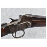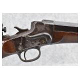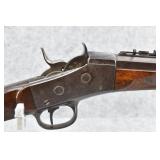 75. Remington – Mod. Remington-Hepburn No. 3 Target Rifle – 45-70 Cal. Single Shot Breech Load Rifle – w/30” Heavy Octagon Barrel w/Target Globe Front w/Level & Wind Adj. & Sporting Rear Sights – Blued/Gray Finish – w/Checkered Round Knob Pistol Grip Wood Butt Stock w/Matching Wood Smooth Forearm w/Metal Forend Tip w/Metal Butt Plate – w/Long Ragne Fine Adj. Veneer Peep Tang Sight