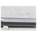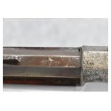 367. Remington – New Model Police Factory Rim Fire Conversion – 38 Rim Cal. Single Action Revolver – w/3 ½” Barrel w/Blade Front & Grooved Rear Sights – Blued/Gray Finish – w/Factory Walnut Wood Grips w/Unique Silver Covers on Bottom of Wood Grips – w/Case, Six 38 Rim Fire Cartridges & Stag Handle Knife