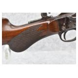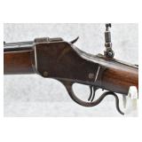 74. Remington – Mod. Remington-Hepburn No. 3 Target Rifle – 38-2 ¼” (38-50 Rem. Hepburn) Cal. Single Shot Breech Load Rifle – w/30” Octagon Barrel w/Redfield Target Globe Front & Sporting Semi Low Buckhorn Rear Sights – Blued/Gray Finish – w/Checkered Round Knob Pistol Grip Wood Butt Stock w/Metal Butt Plate & Non-Checkered Wood Forearm – w/Adj. Long Range Vernier Peep Sight – Barrel Retains Strong Amount of Blued Finish & Very Faint Traces of Case Color on Receiver – Mfg. Circa 1883-1907 w/Only an Estimated 8,000-10,000 Being Made