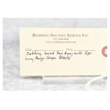 Redding Auction Service Inc. reserves the right to hold any or all merchandise purchased by personal check until the check has cleared the bank. If shipping is requested/required by the purchaser, all packing and UPS/USPS shipping charges will be paid prior to shipping.