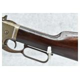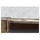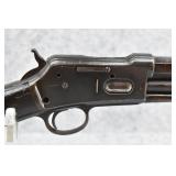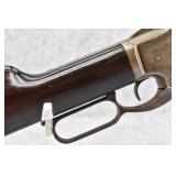 91. Colt – Mod. Lightning-Medium Frame – 32 (32-20) Cal. Pump Action Rifle – w/26” Octagon Barrel w/Blade Front & Notch Rear Adj. Sights w/Full Length Tubular Magazine – Blued/Brown Finish – w/Straight Grip Wood Stock & Checkered Forearm w/Crescent Metal Butt Plate – Mfg. 1886 – Note: Missing Screw on Right Side of Frame